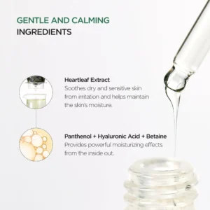 • Gentle Soothing Ampoule Formulated with highly concentrated Heartleaf Extract, this ampoule is easily absorbed by the skin and perfectly preps the skin before makeup, giving a glowy glass skin look